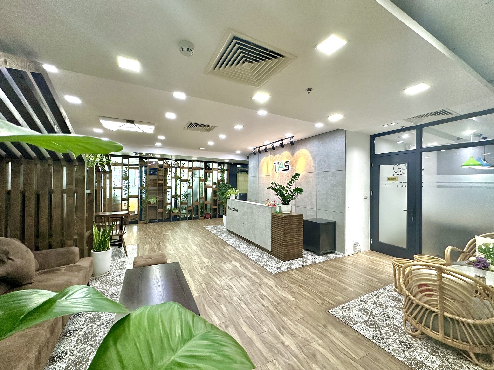 Văn phòng hiện đại, khu tiếp khách sang trọng, lễ tân thân thiện giúp tăng uy tín doanh nghiệp trong mắt đối tác.